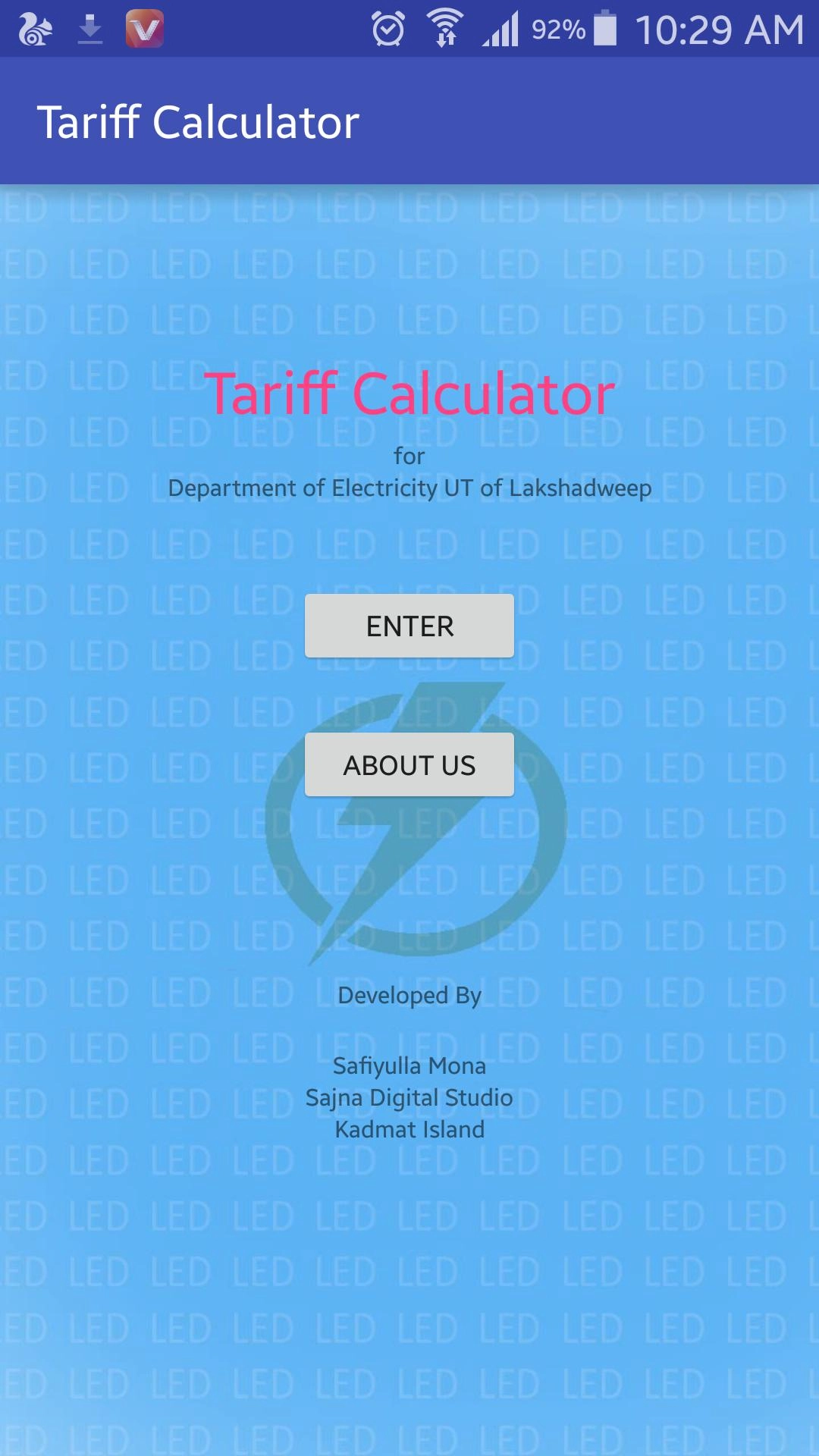 Tariff Calculator เป็นแอปพลิเคชั่น เครื่องมือ ที่พัฒนาโดย SAFIYULLA MONA, Sajna Studio Kadmat Island ที่สามารถทำงานบนอุปกรณ์มือถือ ใช้โปรแกรมจำลอง Android-LDPlayer ที่ดีที่สุด คุณสามารถดาวน์โหลดและเล่น Tariff Calculator บนคอมพิวเตอร์ของคุณได้