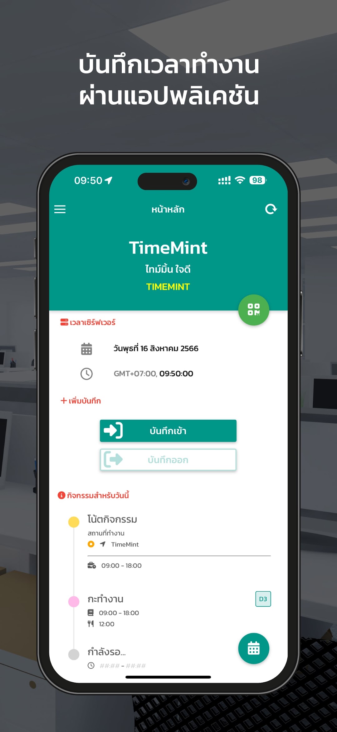 - บันทึกเวลาเข้าออกงาน (time stamping)