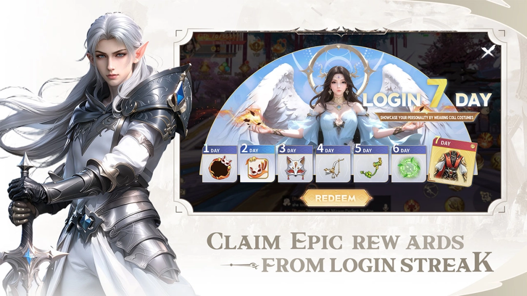 เข้าสู่ระบบทุกวันเพื่อรับของขวัญที่จะช่วยให้คุณเติบโตอย่างมั่นคง ด้วยรางวัลล็อกอิน 7 วัน คุณจะปลดล็อกทรัพยากรที่มีประโยชน์ เครื่องแต่งกาย และไอเทมหายากเพื่อเริ่มต้นการผจญภัยของคุณ กลับมาบ่อยๆ และเพลิดเพลินไปกับเซอร์ไพรส์แบบไร้แรงกดดัน