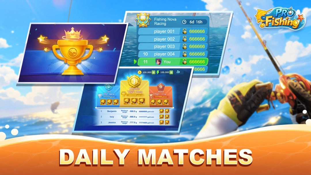 มีสิ่งที่น่าตื่นเต้นเกิดขึ้นเสมอ! เข้าร่วมกิจกรรมตกปลาประจำวันเพื่อรับรางวัลอุปกรณ์พรีเมียม หมุนวงล้อนำโชคเพื่อรับรางวัลโบนัส และปลดล็อกคันเบ็ดและหีบสมบัติในตำนาน รางวัลใหญ่ครั้งต่อไปของคุณอยู่แค่เอื้อม!